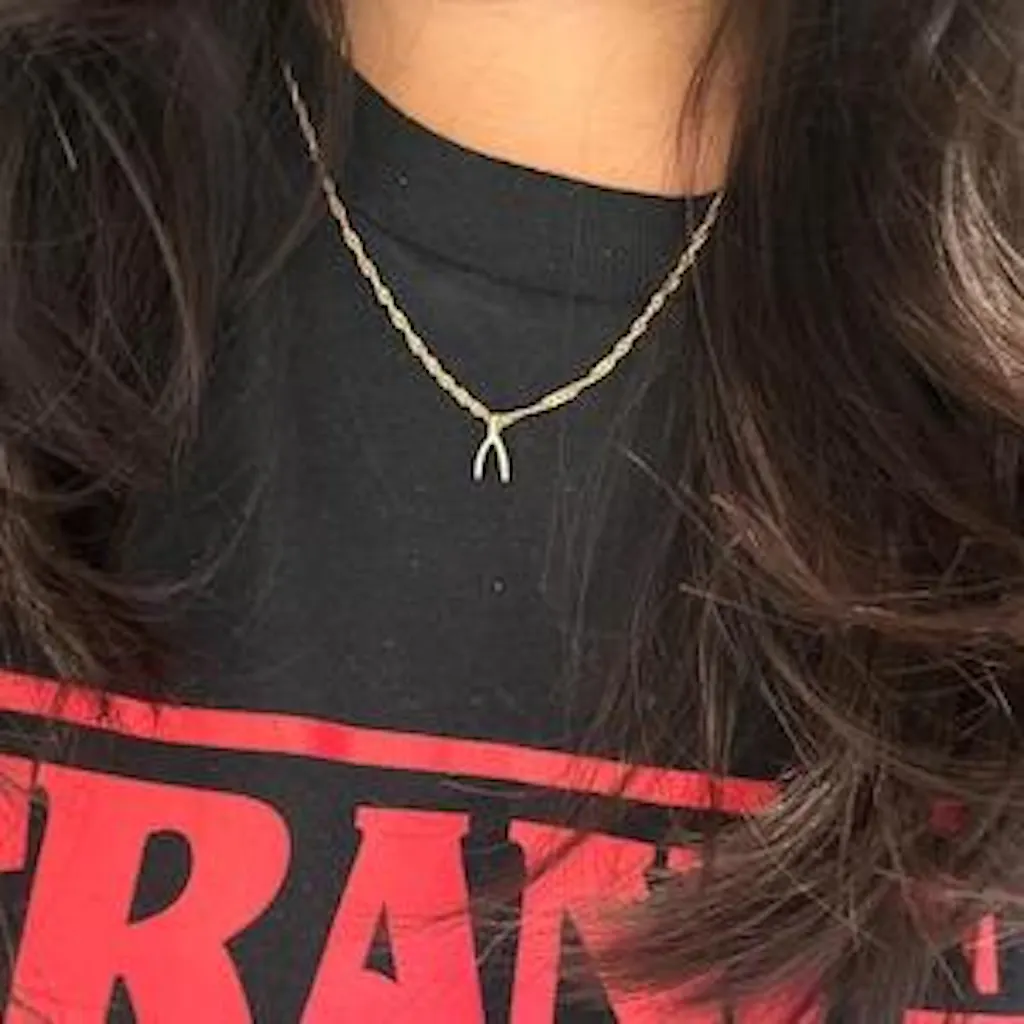 One tiny wishbone lucky pendant handcrafted in 14K solid gold. Believes it, dreams do come true!